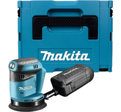 The Makita DBO180ZJ is a 18V cordless palm excenter sander that is designed for professional and DIY users. It features a variable speed control, an ergonomic design, and a dust collection system.